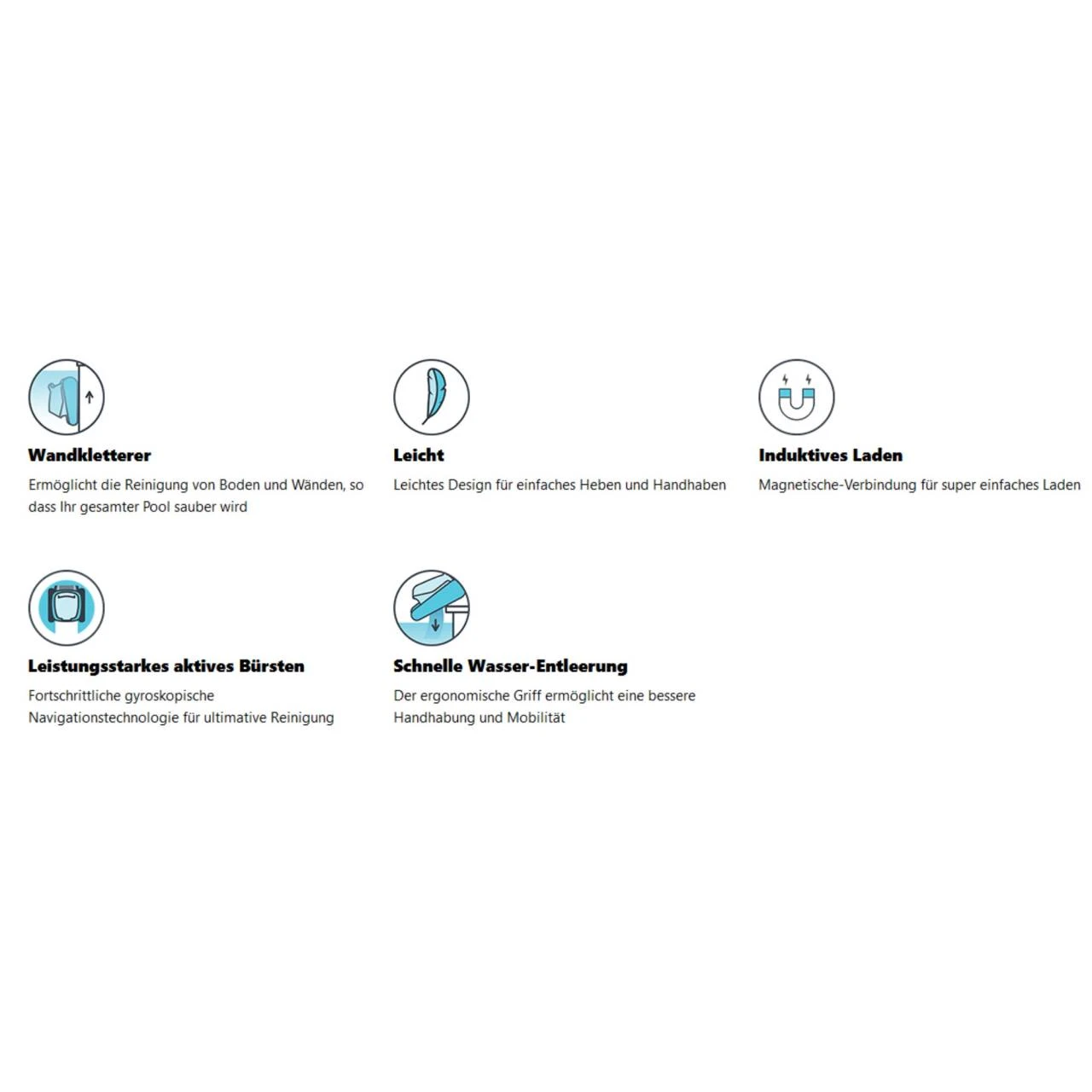 - Die Reinigung aller Bereiche des Beckenboden (Kanten) kann nicht vollständig garantiert werden