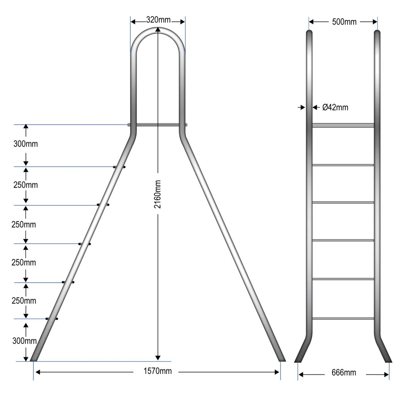 Die hochwertigen Aufstellleitern sind für alle Poolarten und -formen geeignet. Die Leiterholme aus V2A-Edelstahl bieten einen optimalen Halt, ebenso wie die Stufen aus V2A-Edelstahl mit rutschhemmender Prägung.
