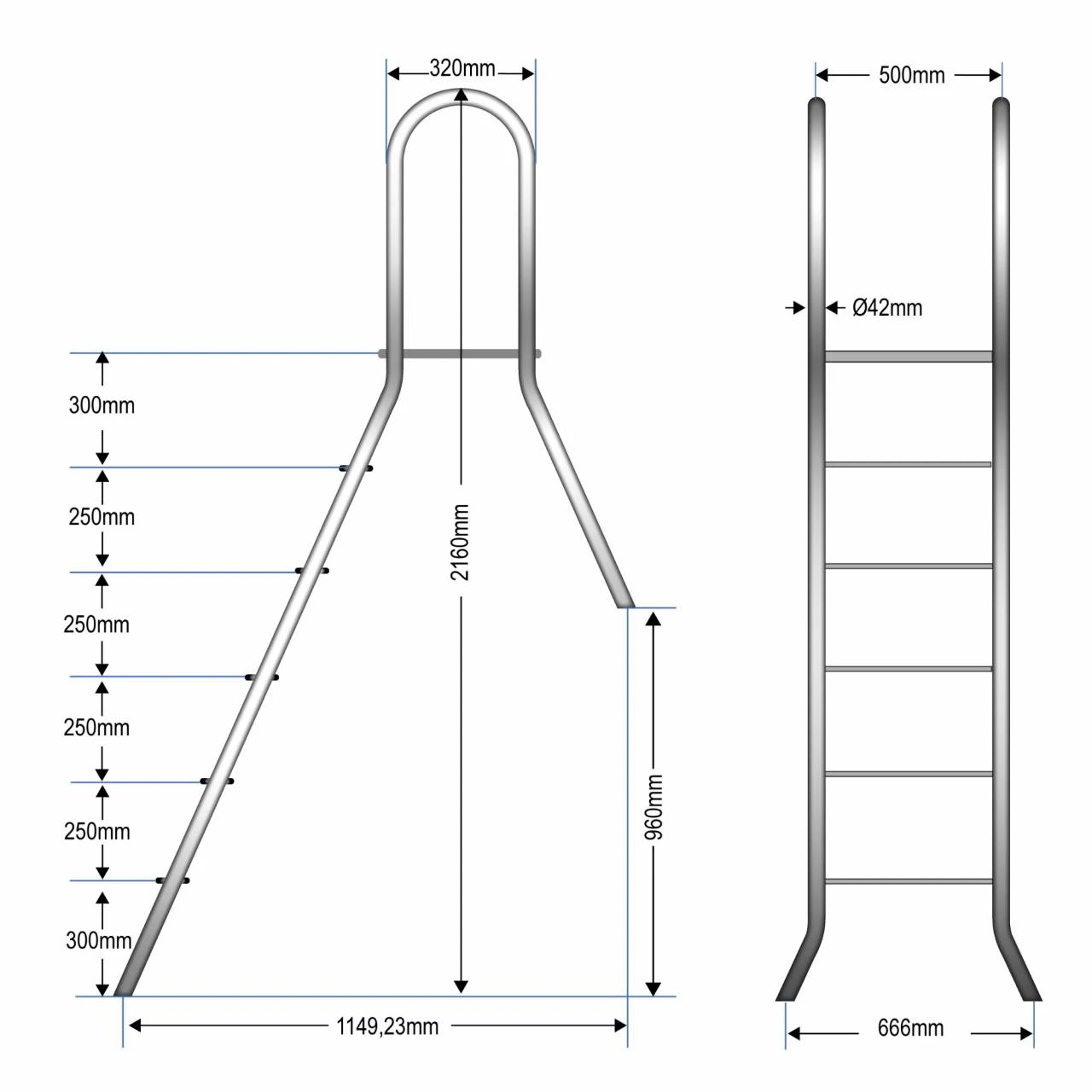 Die hochwertigen Aufstellleitern sind für alle Poolarten und -formen geeignet. Die Leiterholme aus V2A-Edelstahl bieten einen optimalen Halt, ebenso wie die Stufen aus V2A-Edelstahl mit rutschhemmender Prägung.
