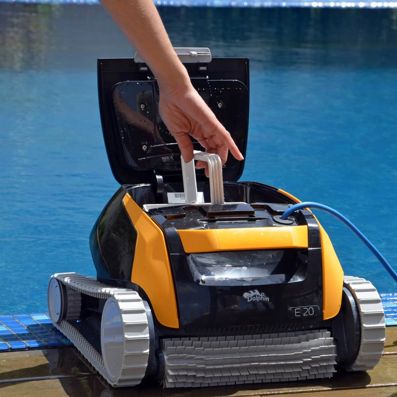 Der Dolphin E20 besticht durch sein leichtes Gewicht von nur 6,5 kg. Dabei klettert er auch die Wände hoch. Er ist geeignet für alle Beckenformen bis zu einer Länge von 10 m und einer Breite von bis zu 4 m. Und das zu einem Spitzenpreis für einen Wandkletterer.