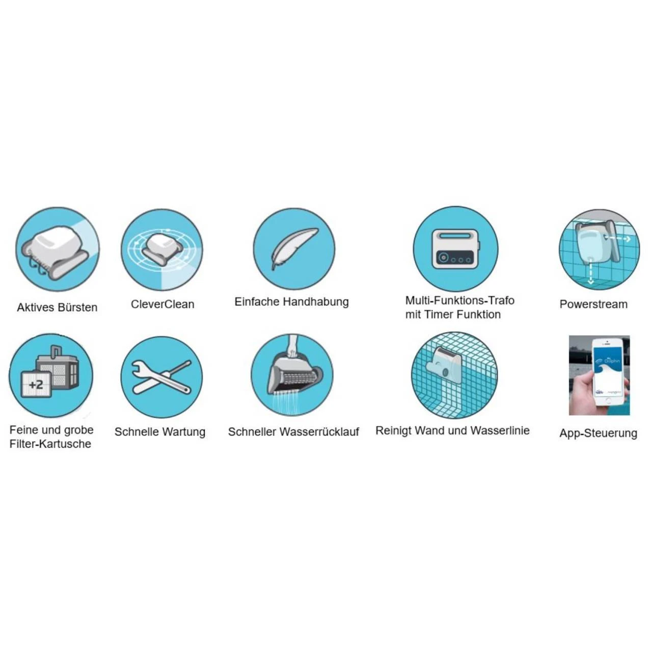 - Bewährte Zuverlässigkeit – produziert von Maytronics, dem Marktführer im Bereich der Schwimmbadreinigungs-Robotern