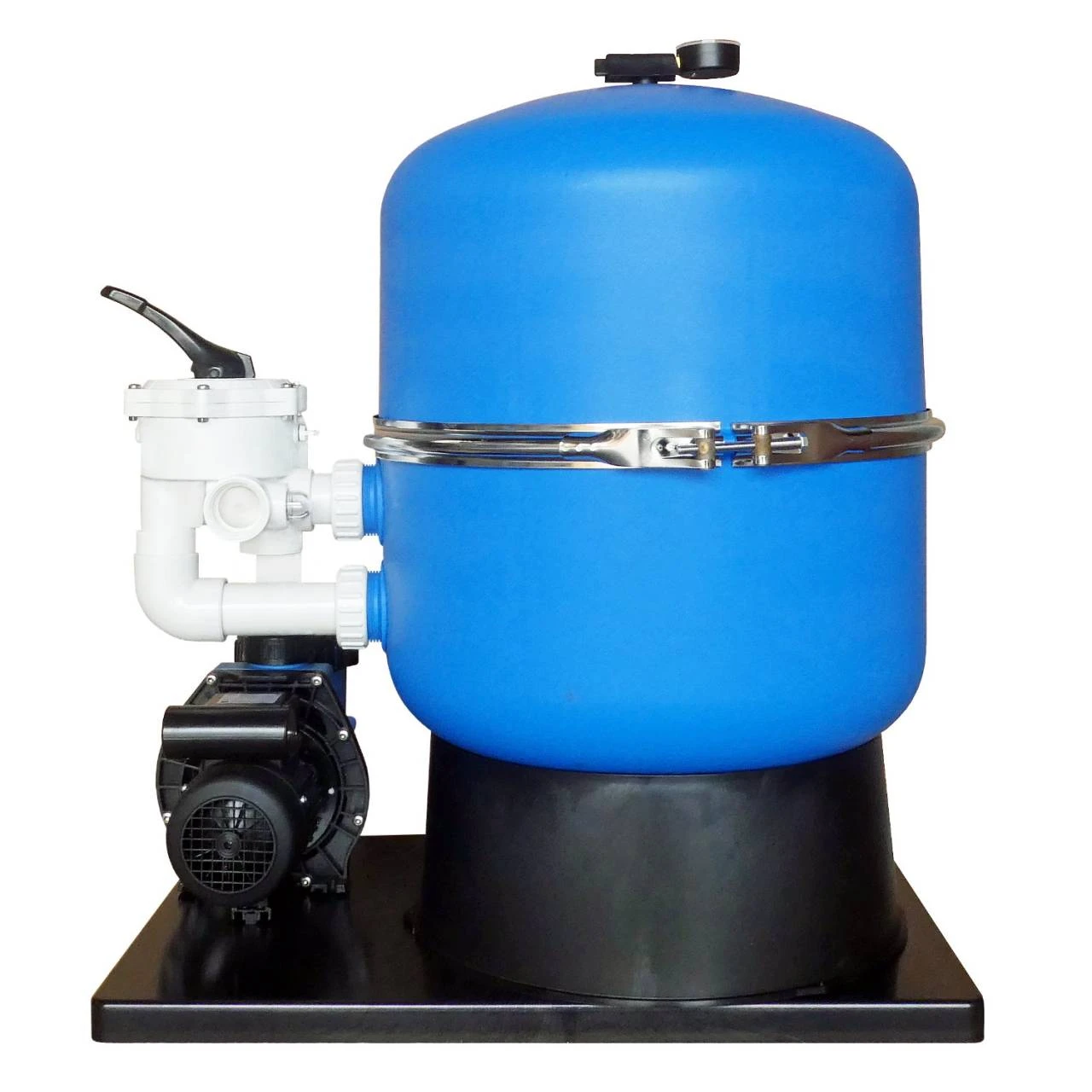 - Lieferung: Filterkessel, Wegeventil und Pumpe fertig montiert auf geräuscharmer Grundplatte