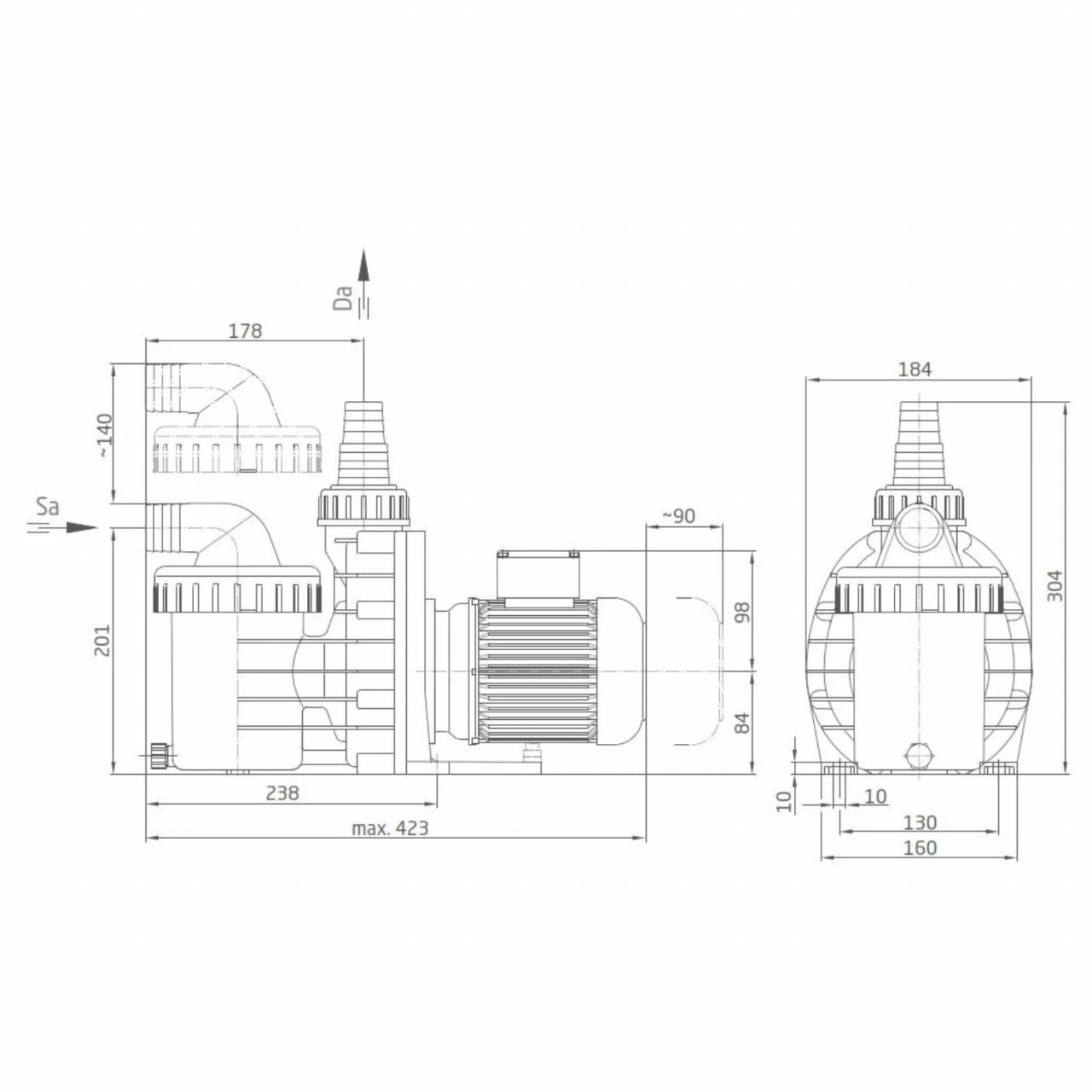 - Anschluss Saugseite für 38 mm Schwimmschlauch