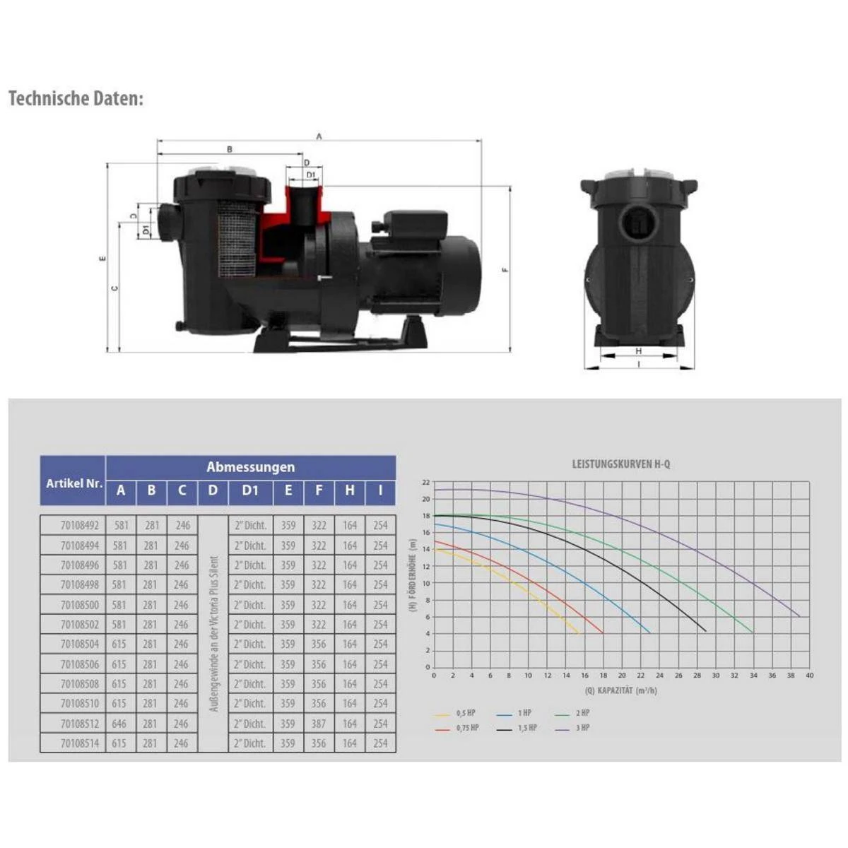 - die Pumpenbaureihe Victoria Plus Silent ist auf der Saug/Druckseite mit einem 2″IG versehen. Ferner besitzt diese Baureihe an den Stutzen jeweils ein AG für die typischen Anschlussverschraubungen der früheren Baureihen Sprint/Super Sprint/ Victoria 1+2. Serie und Nautilus